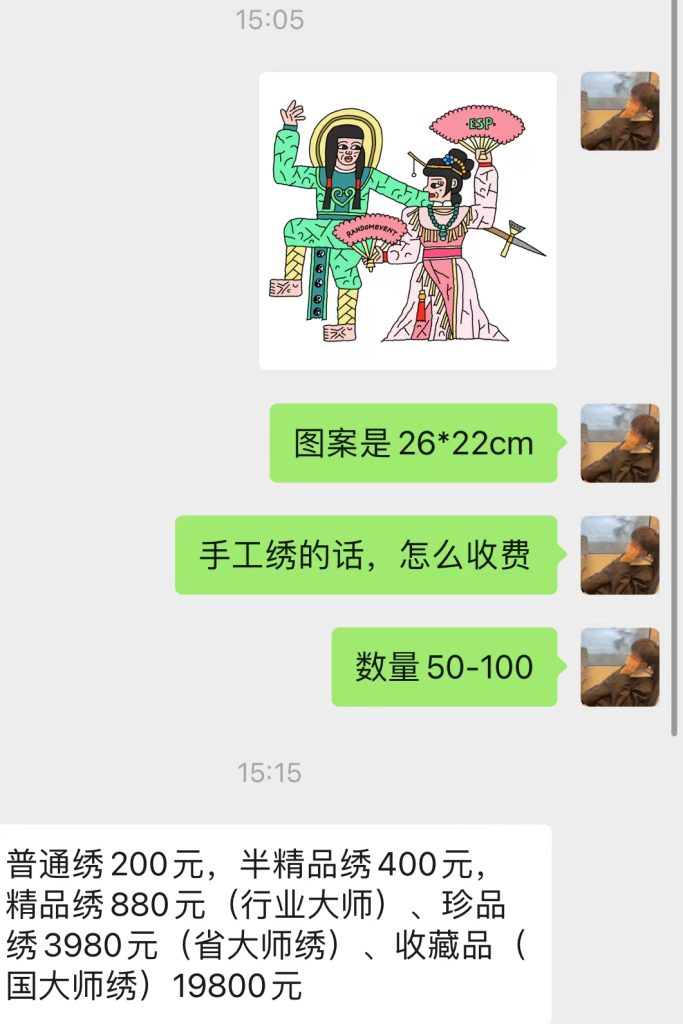 According to the quotation provided, the price is according to the craftsmanship level of the embroiderer and the title in the industry. If these prices are only used as art collection or personal feeling, it is okay, but if the pattern is used in a large number and is used by the public products, such as clothes, bed covers and other daily necessities, only a few people are willing to pay this price. Pay and afford, whether it is for consumers or companies that want to apply hand embroidery to the brand, unless it is advanced customization or luxury, the cost of hand embroidery is unacceptable to ordinary consumers and ordinary companies.